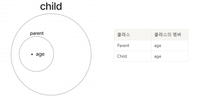 → 자손 클래스는 조상 클래스의 멤버를 모두 상속받기 때문에, Child 클래스는 자동적으로 age라는 멤버변수가 추가된 것과 같은 효과를 얻는다.