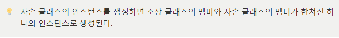 - 하나의 조상 클래스만을 상속받을 수 있다.