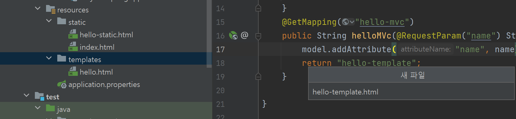 return hello-template을 통해 이 것이 hello-template.html로 넘어간다