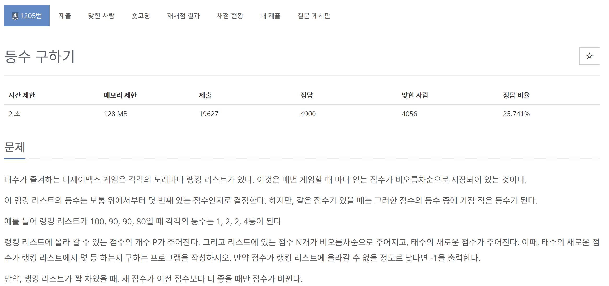 1205번: 등수 구하기