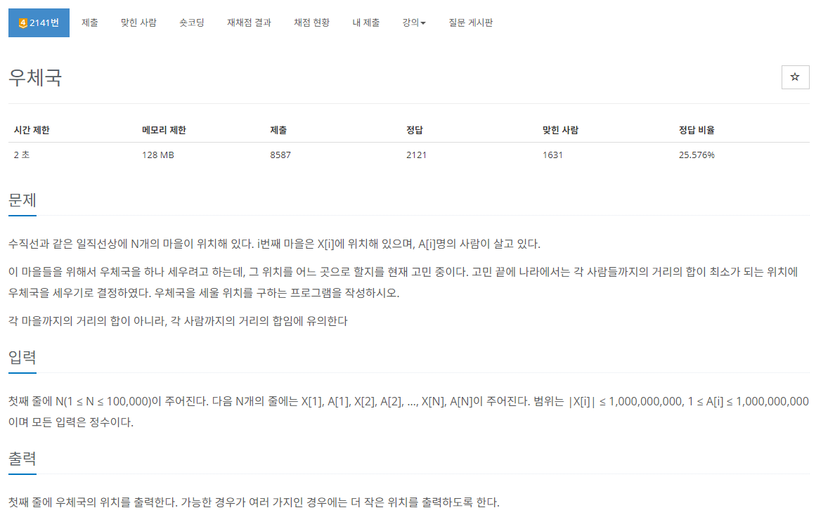링크 : https://www.acmicpc.net/problem/2141