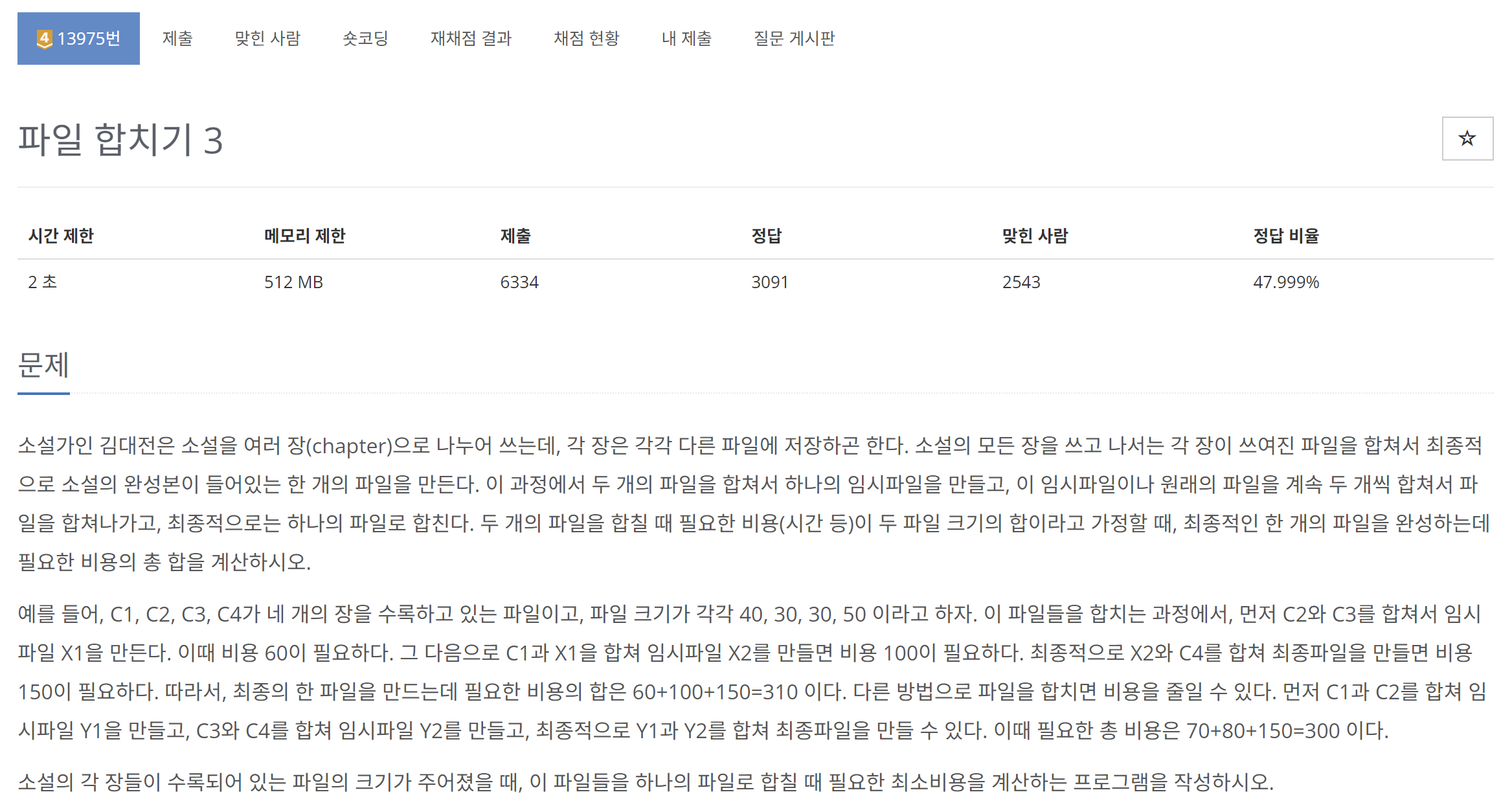 가장 작은 파일 2개를 계속 합산해 나가다 보면
