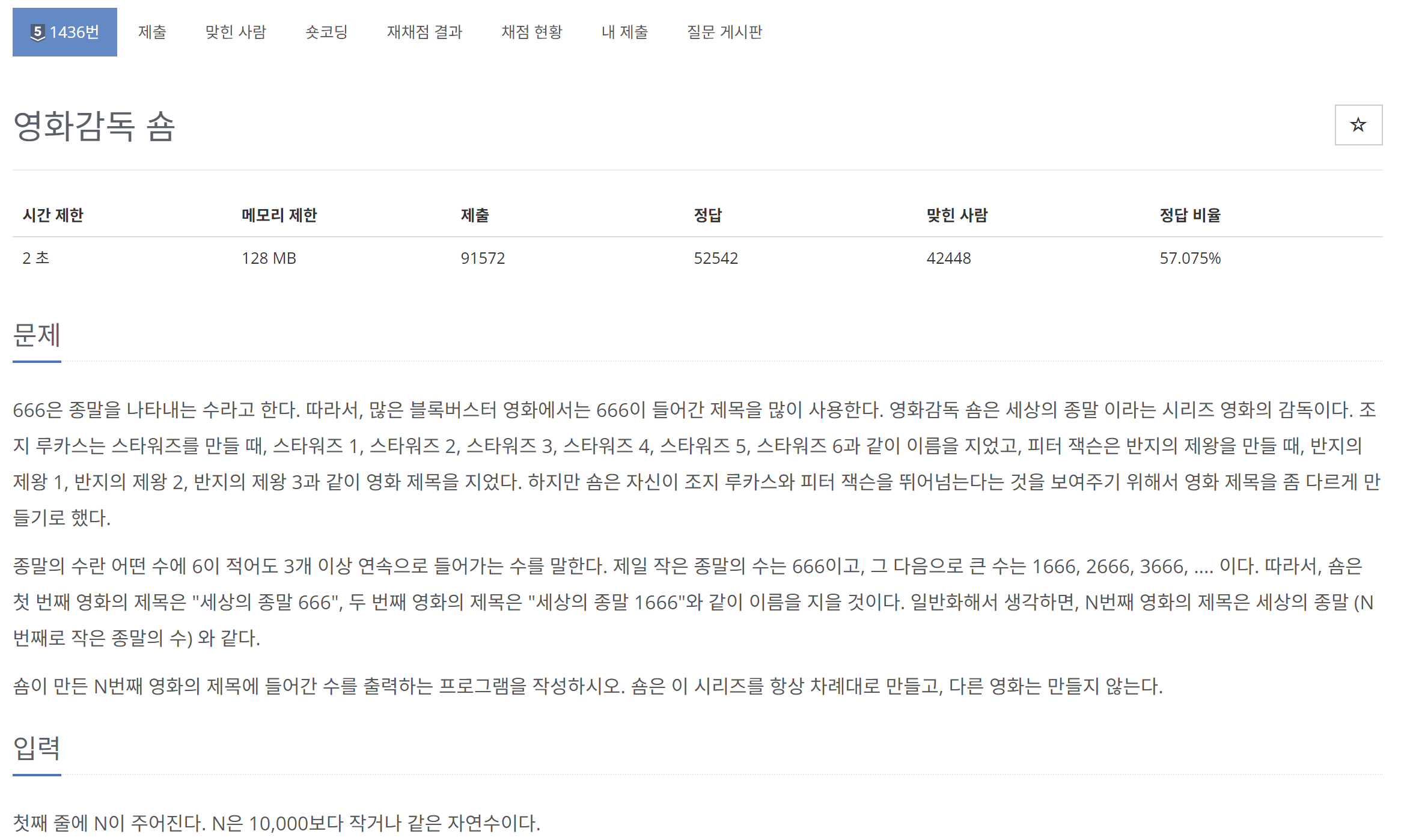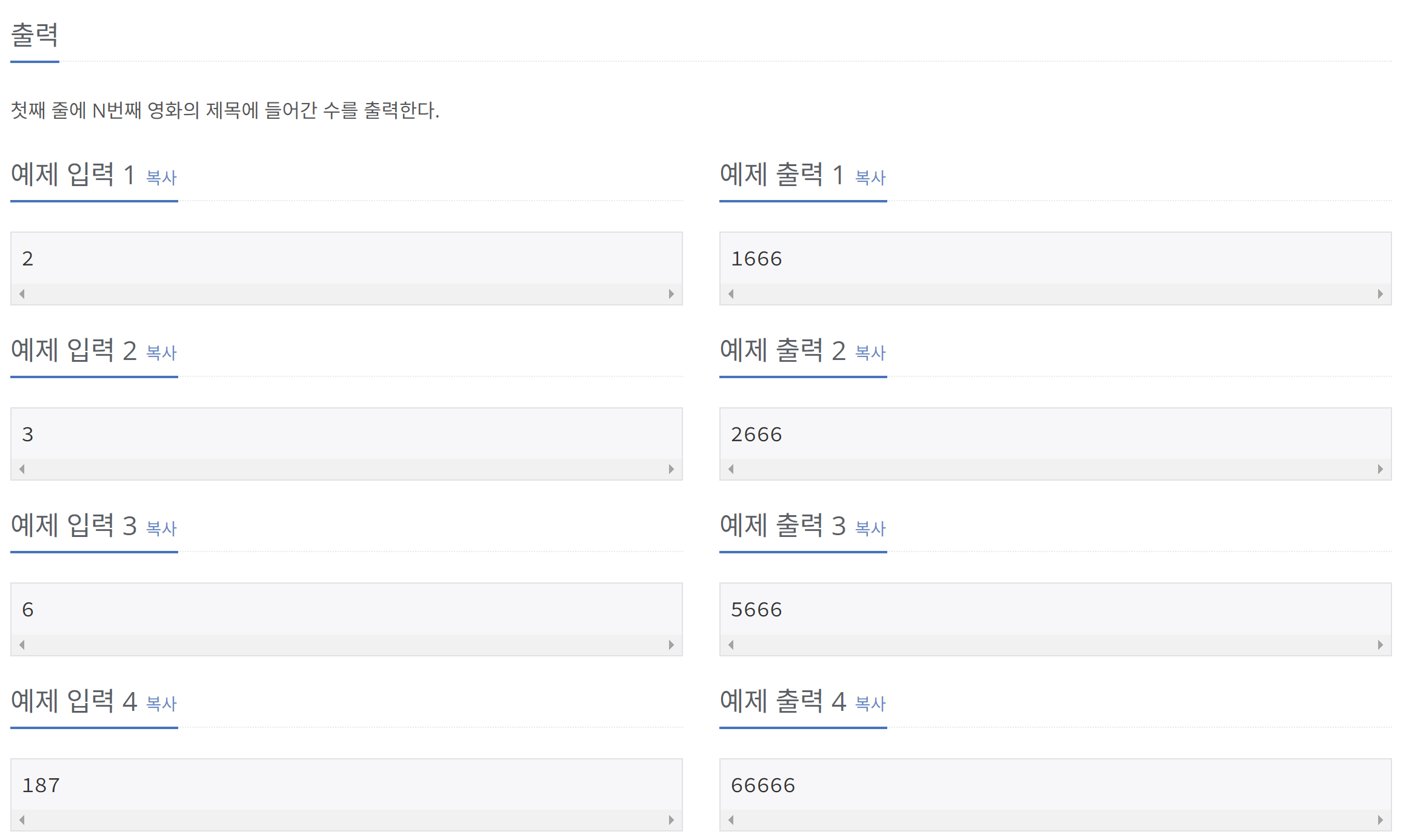 숫자를 증가시키면서 안에 666이란 숫자가 있는지 검사하는 것이다