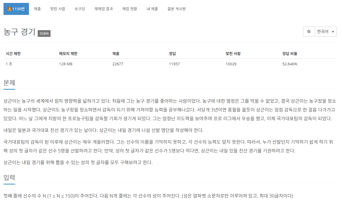 링크 : https://www.acmicpc.net/problem/1159