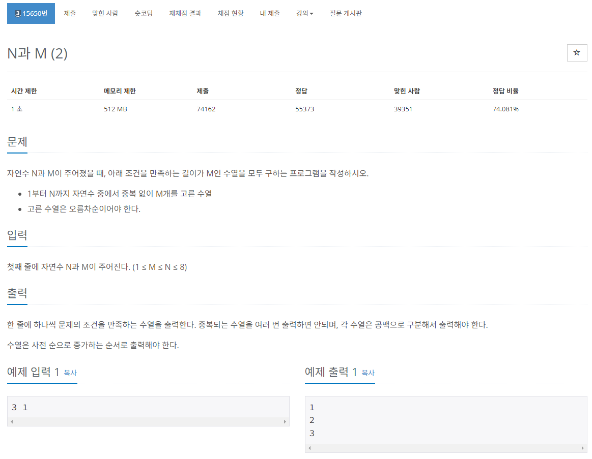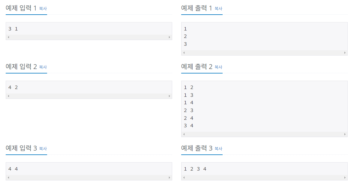 링크 : https://www.acmicpc.net/problem/15650