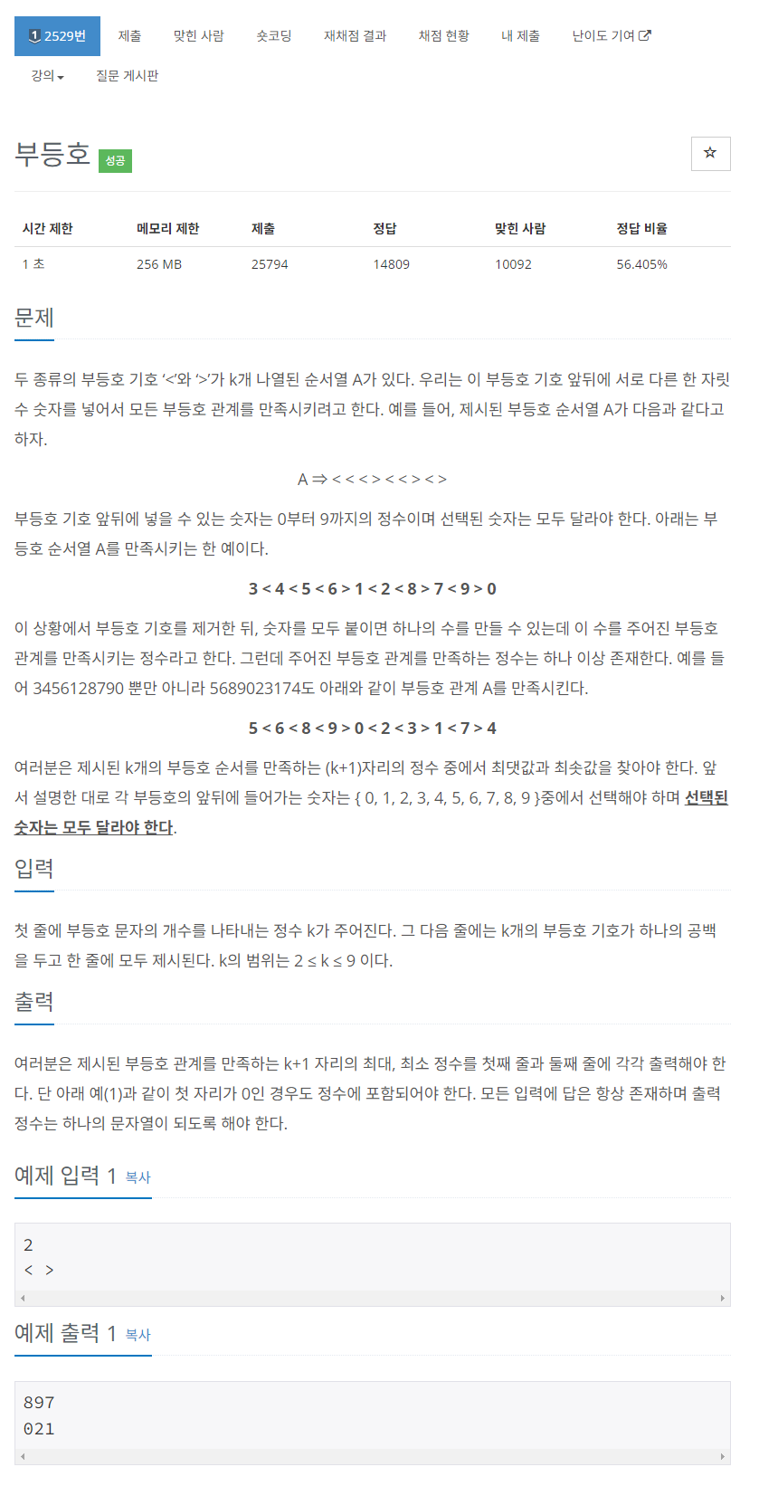 링크 : https://www.acmicpc.net/problem/2529