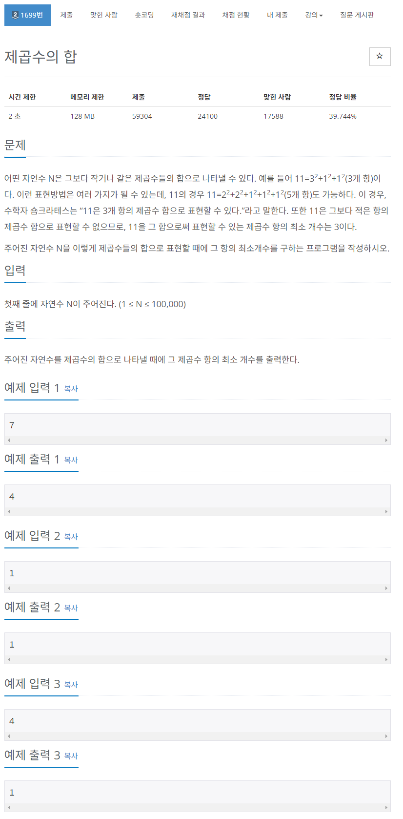 링크 : https://www.acmicpc.net/problem/1699