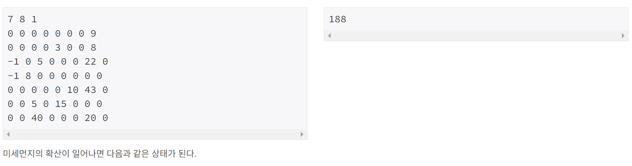 따라서 먼저 미세먼지가 있는 [i,j, 미세먼지 농도]를 저장한 후