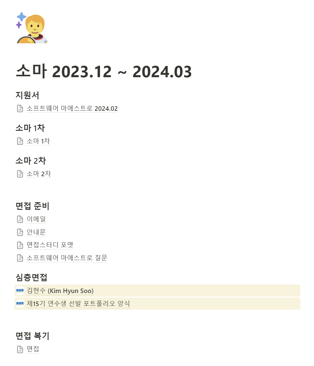 | [소프트웨어 마에스트로] 작년부터 ~~ 소마 15기 지원까지 (2) | 2024.03.12 |