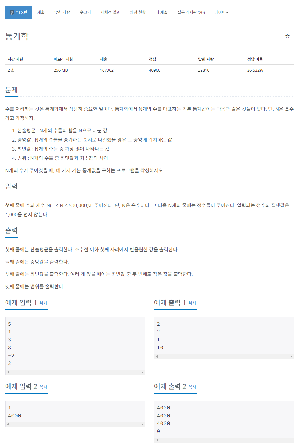 링크 : https://www.acmicpc.net/problem/2108