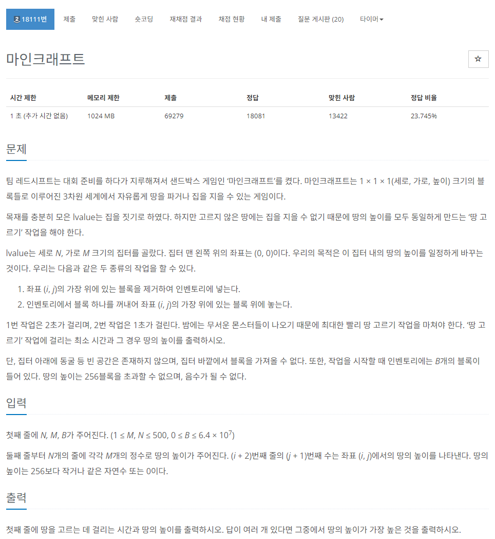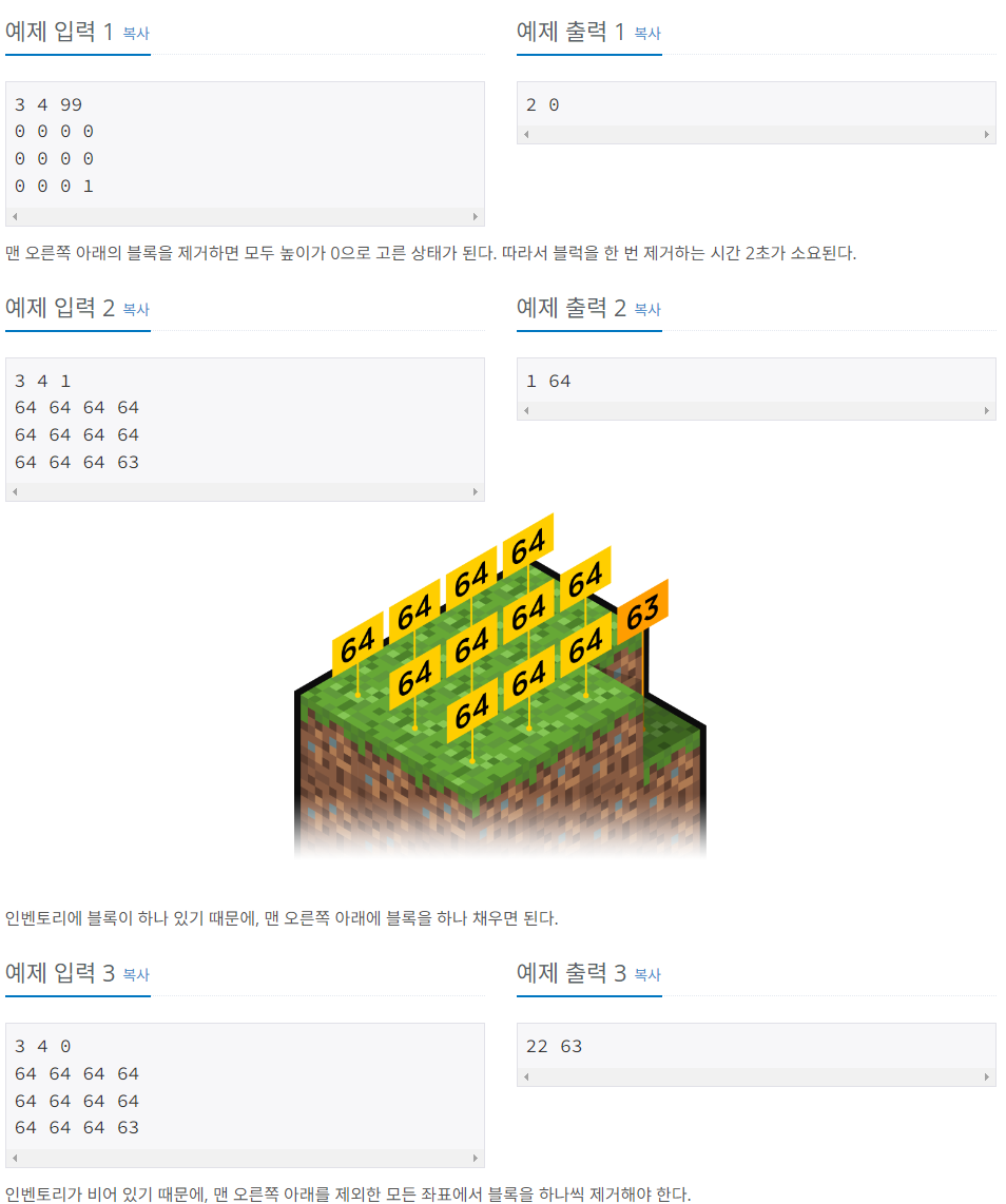 (전체 블록의 수 + 주어진 인벤토리의 블록 수) // 전체 땅 넓이이다