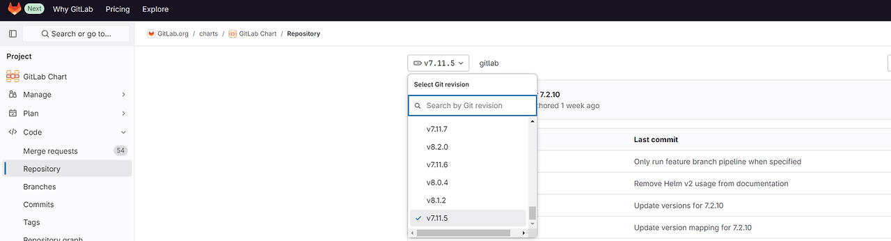 helm pull gitlab/gitlab --version 7.11.5 # 버전 예시