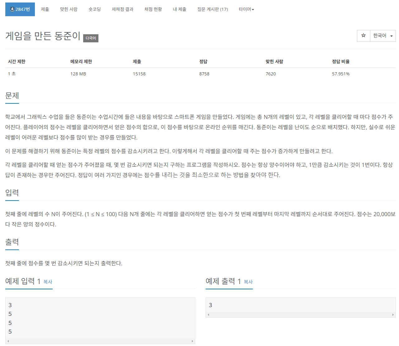 링크 : https://www.acmicpc.net/problem/2847