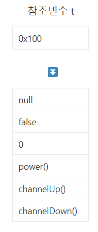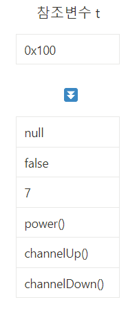 - 참조변수 t에 저장된 주소에 있는 멤버변수 channel 에 7을 저장한다.