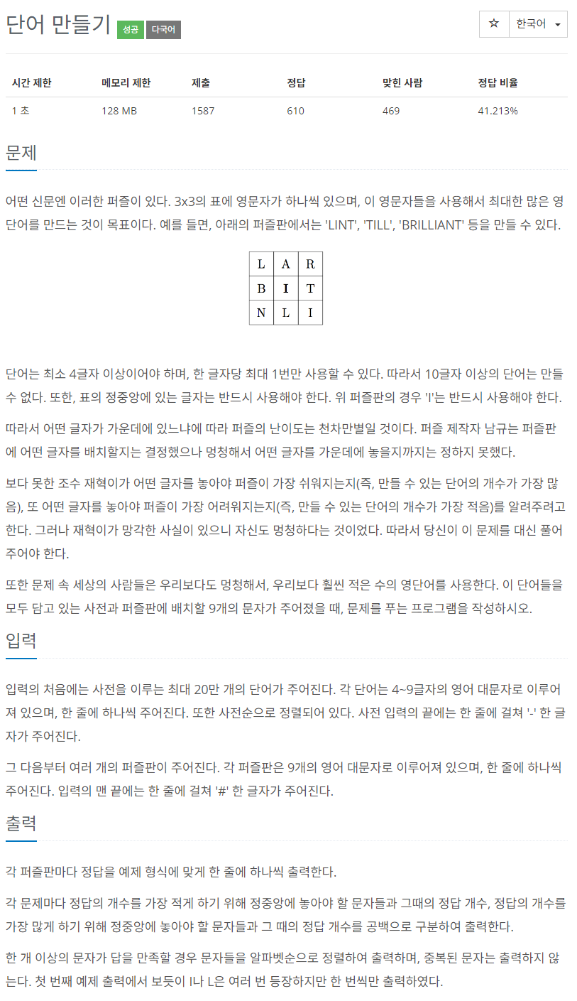 그 다음 주어진 퍼즐의 문자의 조합과 순열로