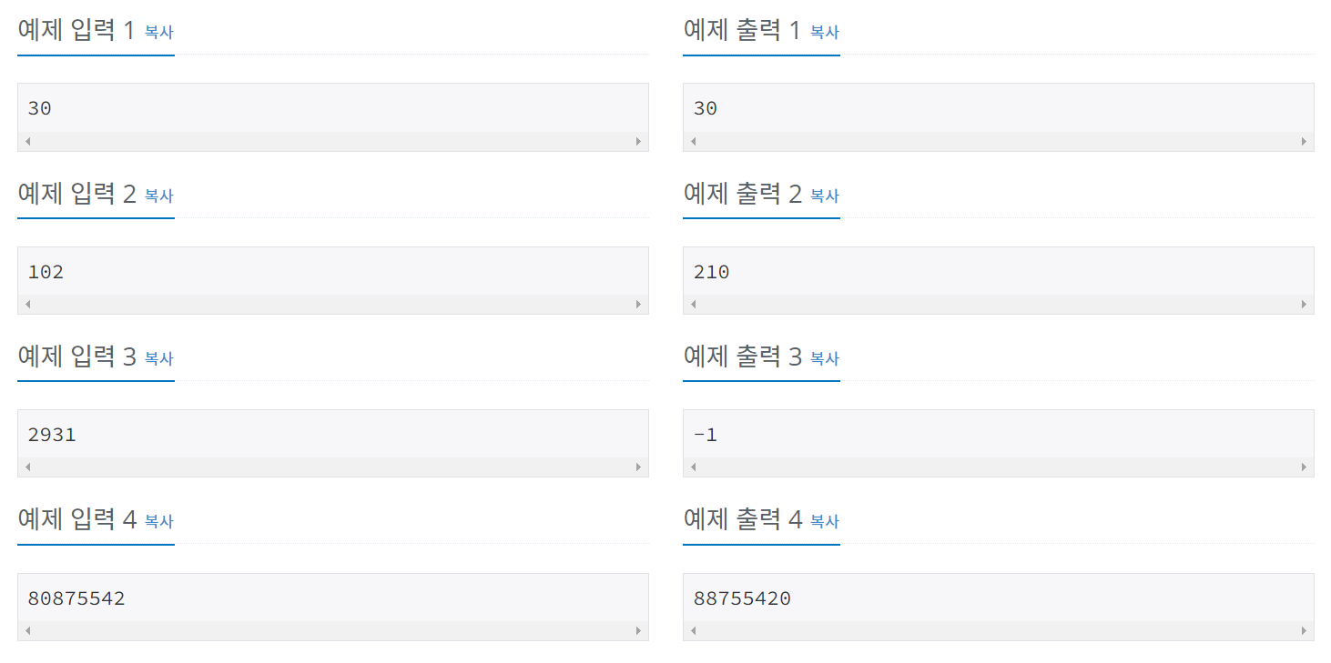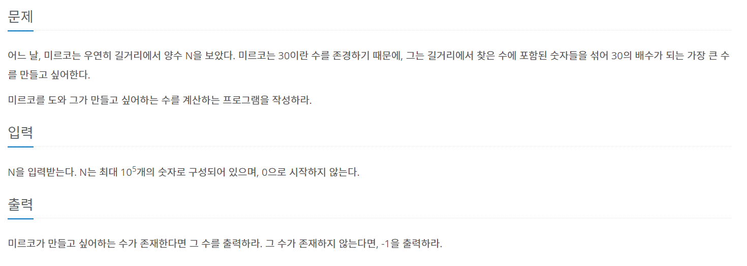 그리고, 주어진 숫자에 0이 없다면 -1을 출력한다.