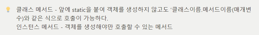 - static 메서드는 같은 클래스 내의 인스턴스 메서드를 호출할 수 없다