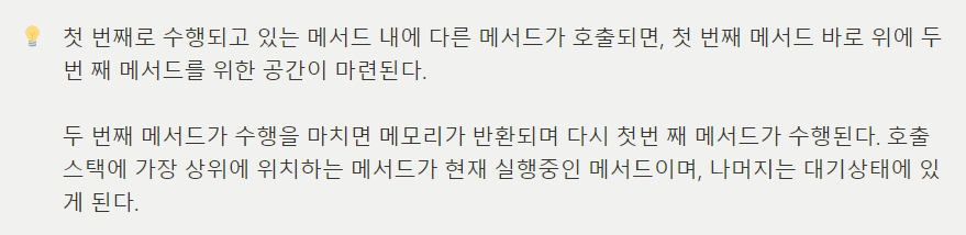 - void 문에 return문을 쓰지 않고도 문제가 없는 이유는 컴파일러가 메서드 마지막에 자동적으로 return;을 추가해주기 때문이다.