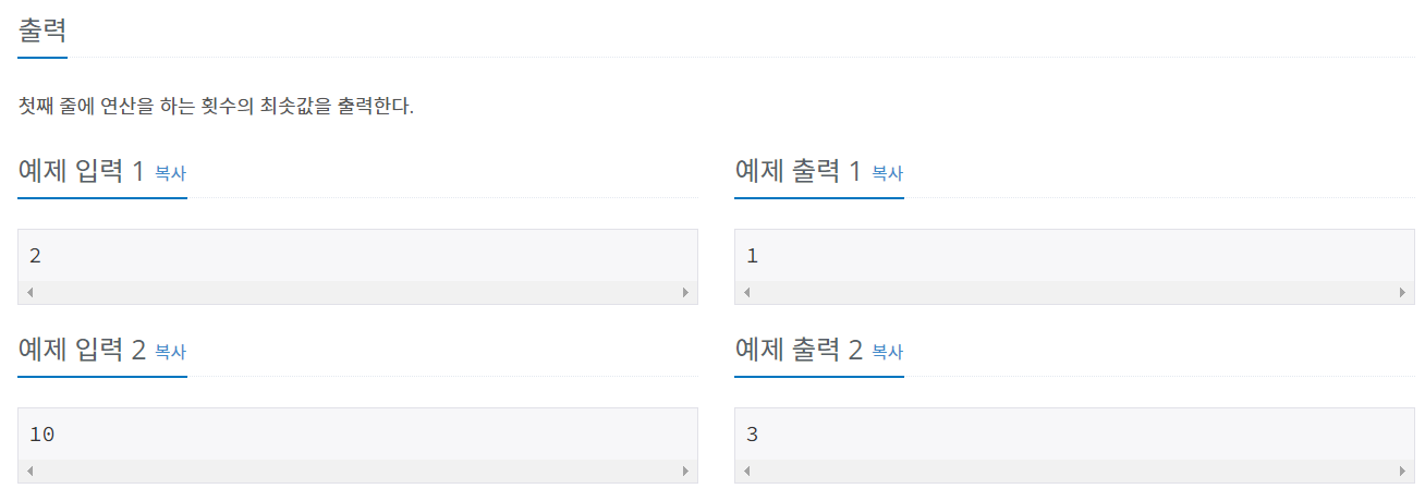 이 3가지 값중 작은 값에 +1(검증으로 한 연산)한 값이 dp[n]의 최소값이다