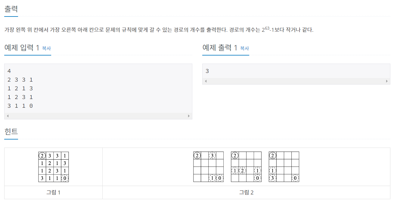 3. dp[n-1][n-1] 끝지점의 좌표의 dp값을 출력한다