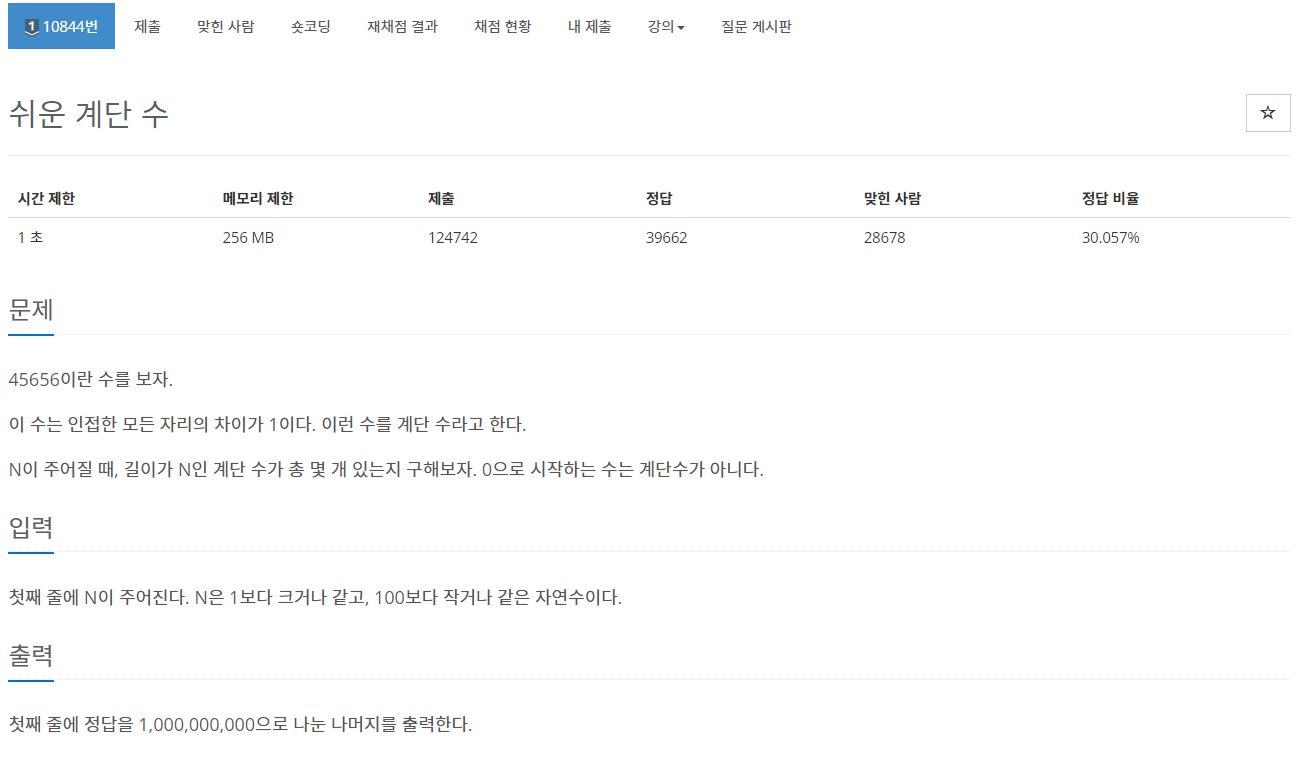 3. dp[n]의 값을 더한 후 1,000,000,000을 나눈 나머지값을 출력한다
