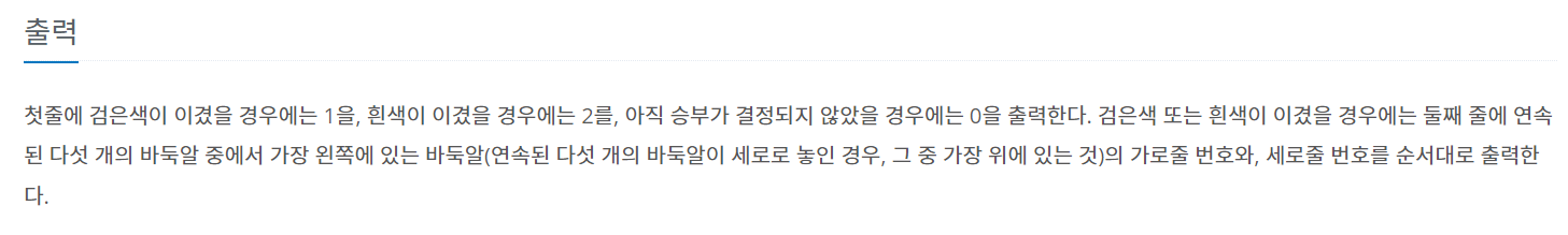 추가해야할 조건은 각각의 배열 앞뒤로는 다른 숫자가 와야한다는 것이다 (육목 방지 조건)